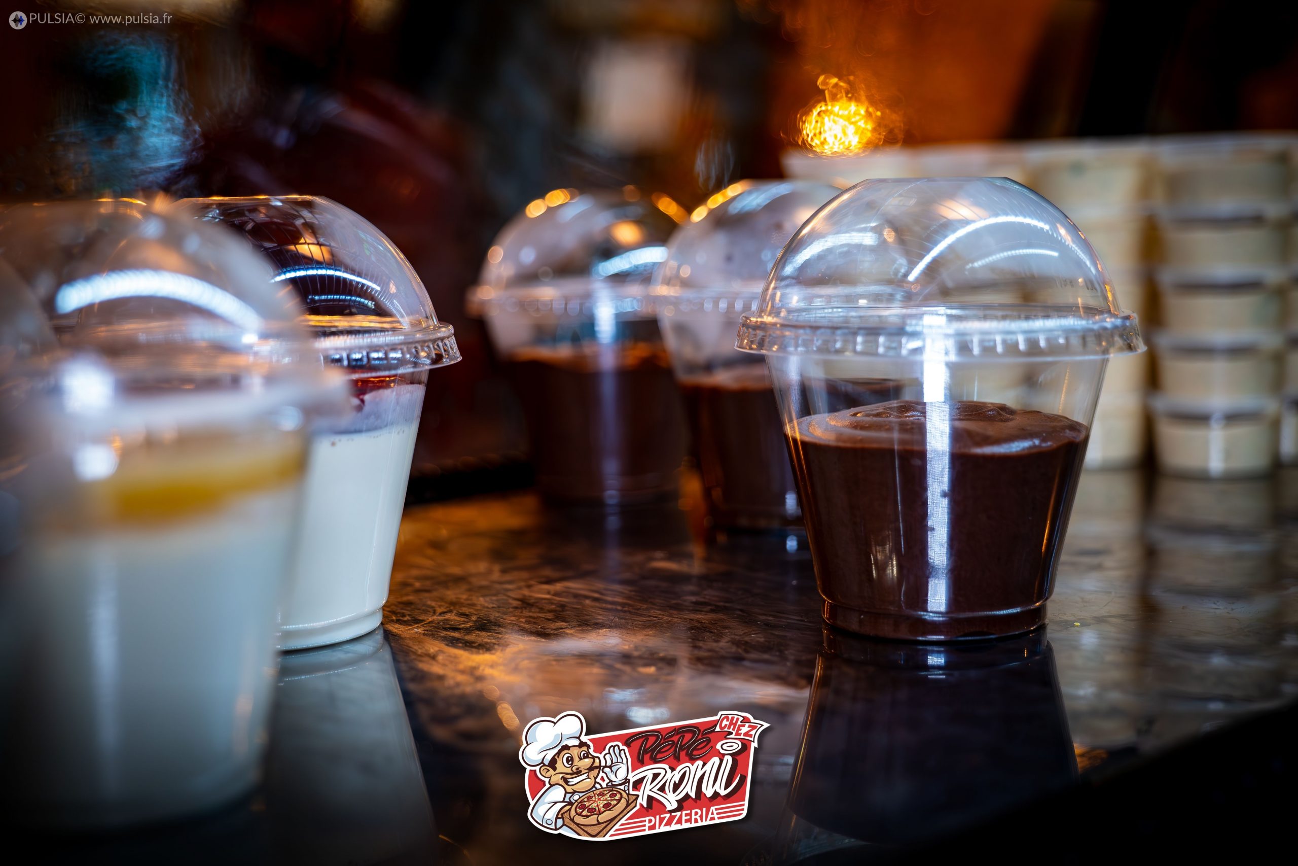 Pépé Roni c’est surtout de bonnes pizzas, mais aussi des desserts gourmands et des boissons fraîches pour accompagner le tout.